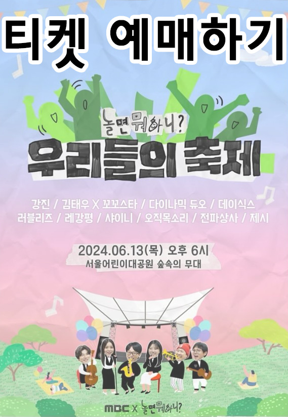 놀면 뭐하니 '우리들의 축제' 티켓 예매 빠른 매진이 예상되는 만큼 즉시 신청하시기 바랍니다.