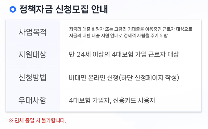 서민 정책자금 신청안내