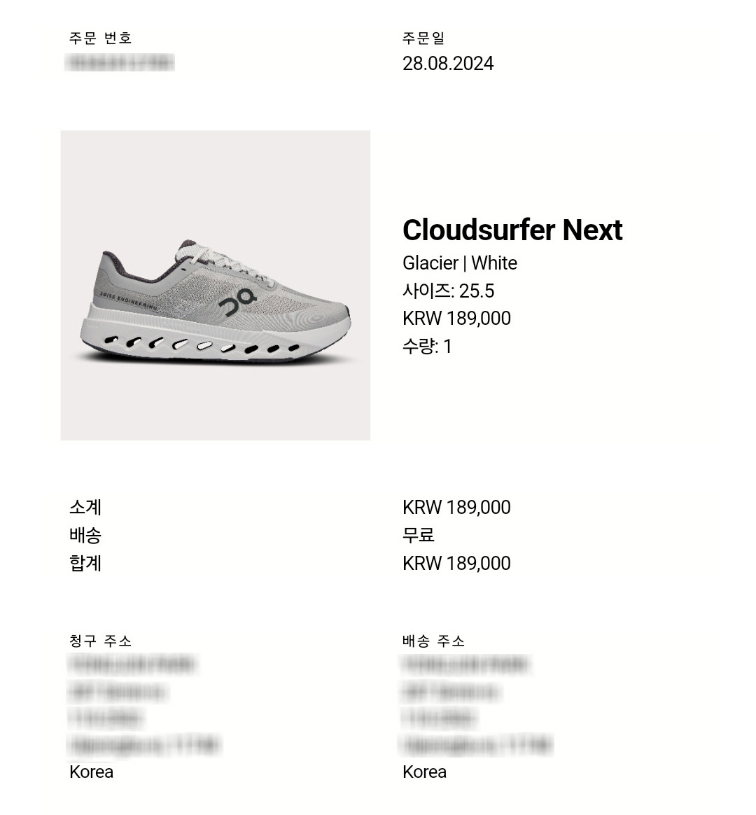 온러닝 공홈(on.com)에서 구매하였으며 직구나 구매대행에 비해 공홈에서 결제 시 추가금(관세) 없이 구매할 수 있어 좋습니다.