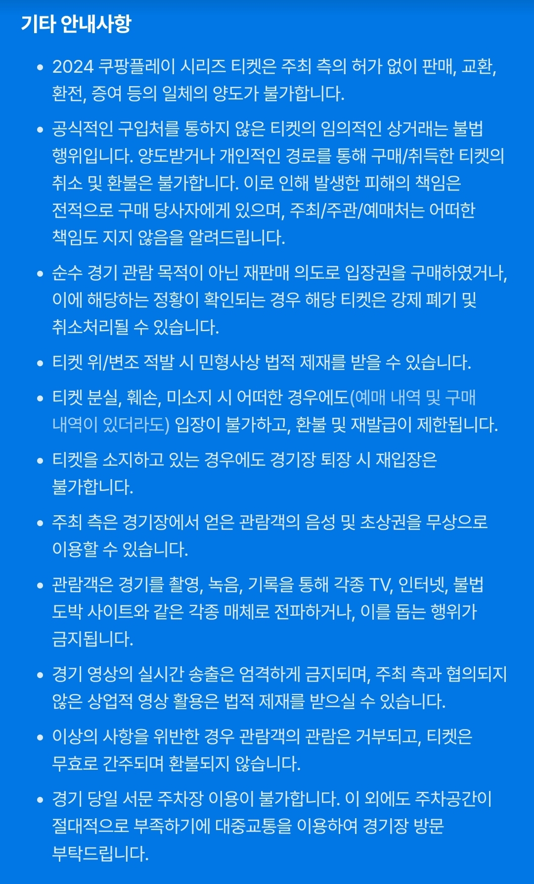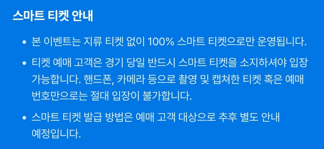 - 예매 티켓은 선물하기 및 양도가 불가능합니다.