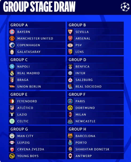가상의 추첨 죽음의 조는 1포트(뮌헨) or (PSG) - 2포트(레알 마드리드) - 3포트(AC밀란) - 4포트(뉴캐슬)로 예측되어 김민재와 이강인 선수의 챔피언스리그가 험난한 여정이 될 수도 있습니다.
