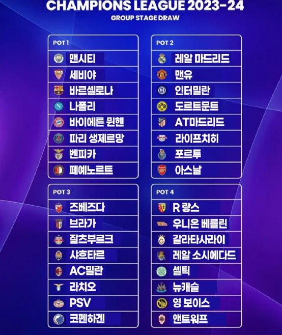 2023-24 챔피언스리그 조추첨 결과는?
